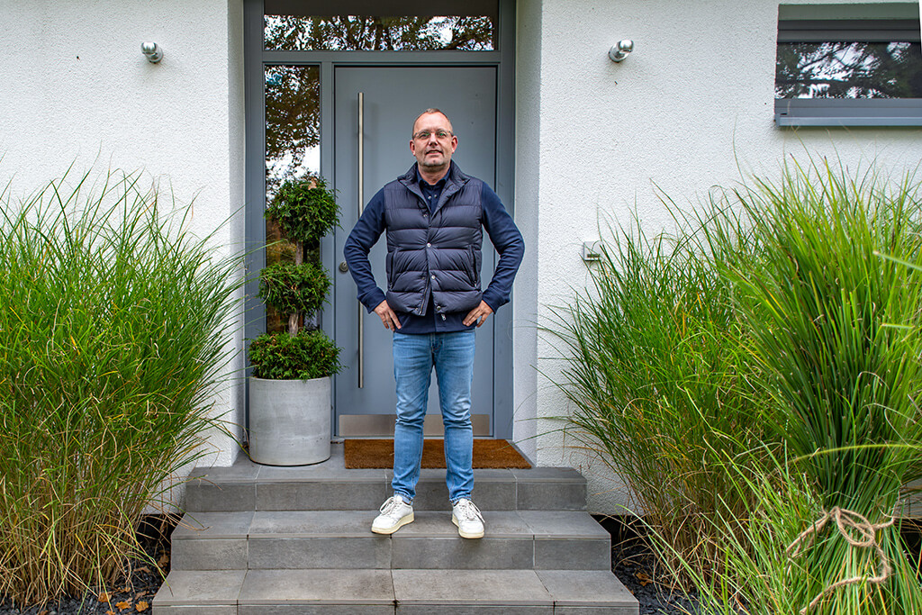 Simon Borges lebt in einem Bungalow. Das Haus stammt aus dem Jahr 1963. Er hat die Immobilie in den vergangenen Jahren kernsaniert. Dabei ist ein großer Sanierungsstau angefallen. Die Heizungsanlage gehörte dazu. Die TrioSan GmbH half mit der Installation einer Wärmepumpe geholfen, diesen Stau aufzulösen.